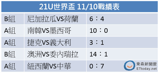 ▲21U世界盃11/10戰績表。(圖/ETtoday東森新聞雲製表)